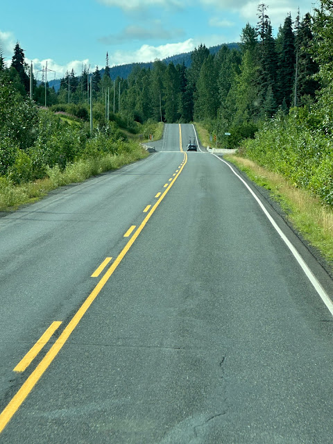 We will be on the Cassiar Highway for a while, first leg is to Nugget, BC, one of our longest trips, 306 miles.  An added perk is we are leaving cell service, Mica is bummed.  Stopped at Baby Nugget RV, no cell, no internet, Mica is really bummed.  Still heading south now driving 240 miles to an abandoned gravel airfield, because there are no towns on the way.  Burrage Airstrip is being used for helicopters at a logging camp.  We got there in the rain, so we just settled down for the evening, it’s a nasty chilly rain, no pictures either….Still no cell or internet, Mica is starting to show signs of withdrawal!