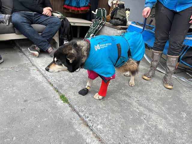 We did see what equipment they used and they brought out a dog to demonstrate what the dogs actually wear during the race. It’s nothing like we thought. They wear the stuff in the picture day & night to protect them from the sub-zero temperatures they will endure during the race.